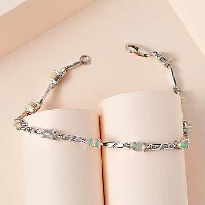 Ethiopian Welo Opal Bracelet (Size - 8) in Platinum Overlay Sterling Silver 1.81 Ct, Silver Wt. 7.61 Gms.