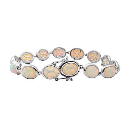 Ethiopian Welo Opal Link Bracelet (Size - 7.0) in Platinum Overlay Sterling Silver 16.38 Ct, Silver Wt. 11.70 Gms