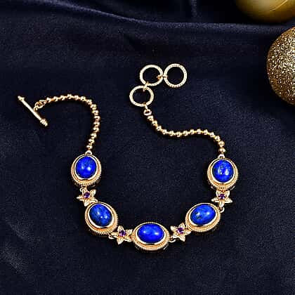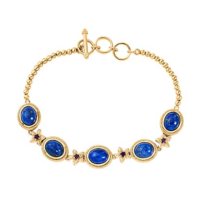 EverTrue Lapis Lagoon & African Amethyst Cluster Bracelet (Size - 7.5) in Yellow Gold Tone 12.50 Ct.