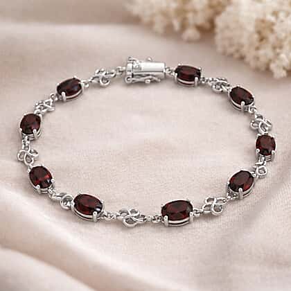 EverTrue Red Garnet Fancy Bracelet (Size - 7) in Rhodium Overlay Pure Yellow Brass 8.550 Ct.