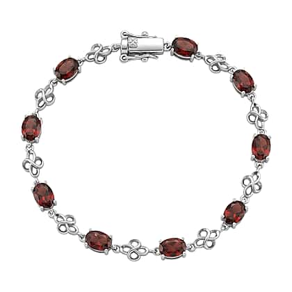 EverTrue Red Garnet Fancy Bracelet (Size - 8) in Rhodium Overlay Pure Yellow Brass 9.500 Ct.
