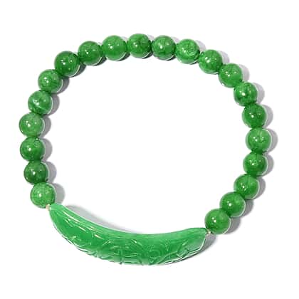 Extremely Rare Hand Carved AAA Green Jade Stretchable Bracelet (Size 7)