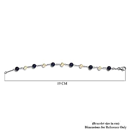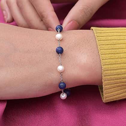 Freshwater Pearl and Lapis Lazuli Bracelet (Size 7.5) in Sterling Silver