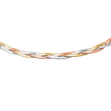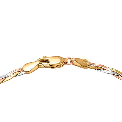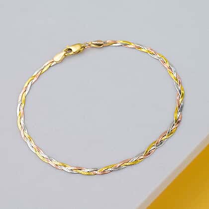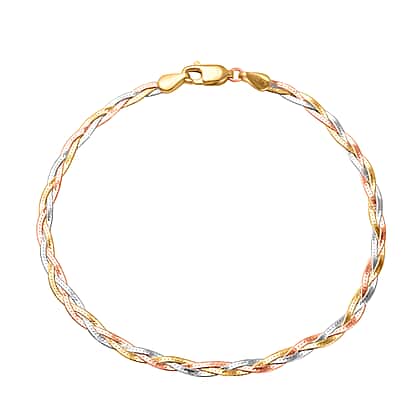 Gold Mega Offer - 9K White-Yellow-Rose Gold Diamond Cut Herrigbone Bracelet (Size - 7.5)