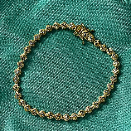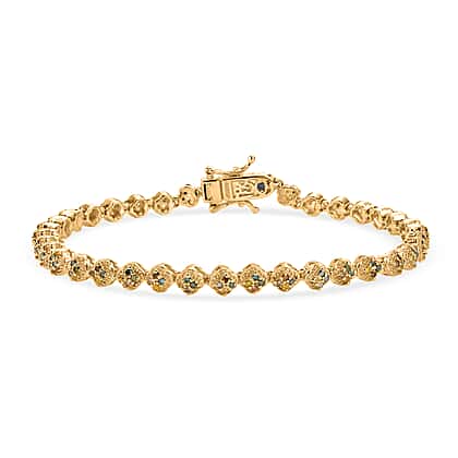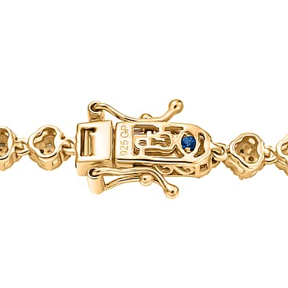 GP - Multi Diamond & Blue Sapphire Tennis Bracelet (Size - 7.5) with GB Lock Box in 18K Vermeil Yellow Gold Plated Sterling Silver 1.00 Ct, Silver Wt. 9.85 Gms