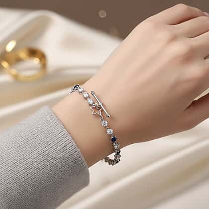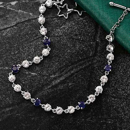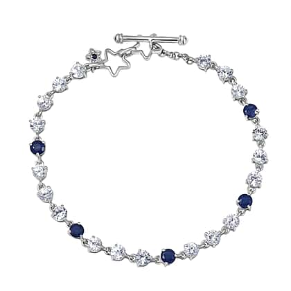 GP - Signature Collection Masoala Sapphire, Blue Sapphire & White Zircon Line Bracelet 1 Row (Size 7.5) in Rhodium Overlay Sterling Silver 9.69 Ct, Silver Wt. 6.07 Gms.