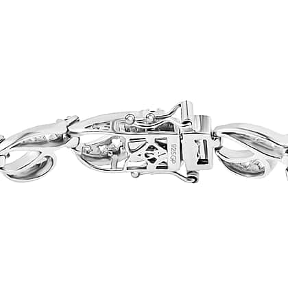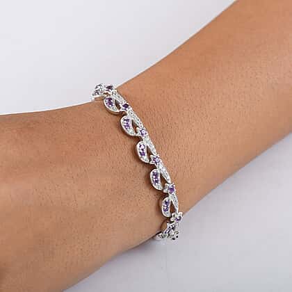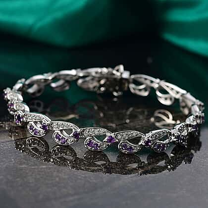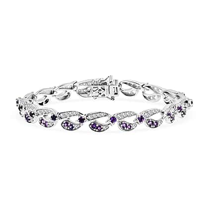 GP- Celestial Dream Collection African Amethyst, Blue Sapphire & White Zircon Motif Linked Bracelet (Size 7.5) with GB Lock Box in Rhodium Overlay Sterling Silver 3.54 Ct, Silver Wt. 17.27 Gms.