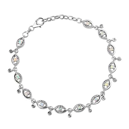 GP - Evil Eye Collection - Ethiopian Welo Opal and Natural Cambodian Zircon Bracelet (Size - 7.5 With 1 Inch Extender) in Platinum Overlay Sterling Silver