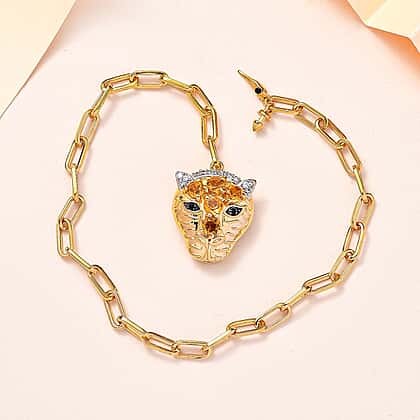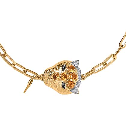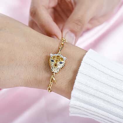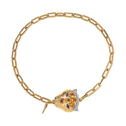 This exquisite Paperclip Chain Bracelet from the GP Italian Garden Collection features a panther motif studded with 21 multi-coloured gemstones, including Citrine, Boi Ploi Black Spinel, and Natural Zircon, each adding a unique splash of colour. The 18K yellow gold vermeil over sterling silver provides a regal finish, enhancing the rich hues of the gemstones. The size 8 bracelet perfectly pairs the durability of sterling silver with the vibrancy of its coloured stones, making it a standout accessory.