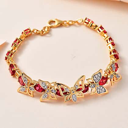 GP Italian Garden Collection -Lab Created Padparadscha Sapphire and Zircon Bracelet (Size - 7.5) in 18K Vermeil YG Plated Sterling Silver 12.50 Ct, Silver Wt. 14.10 Gms
