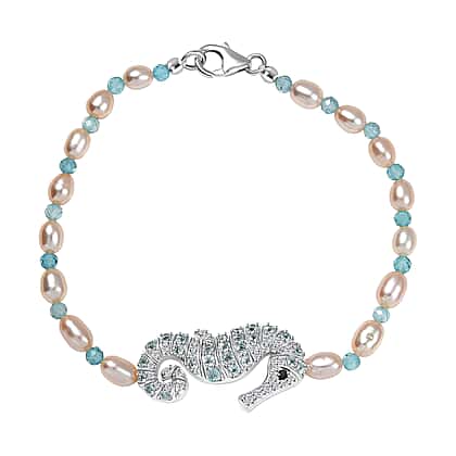 Celebrate the serene beauty of the ocean with this white zircon and multi gemstone seahorse bracelet from the GP Sea Life Collection. Crafted in hypoallergenic, tarnish-resistant rhodium overlay on 925 sterling silver, it’s gentle on sensitive skin and made to last. The centrepiece is a charming seahorse motif adorned with sparkling white zircons, surrounded by alternating freshwater pearls and vibrant multi-gemstone beads for a beautifully balanced design. The seahorse symbolises patience and grace, making this 7.5-inch bracelet a meaningful piece full of storytelling. Finished with a secure clasp, it brings a sense of tranquillity, colour, and coastal wonder to your everyday or holiday look.