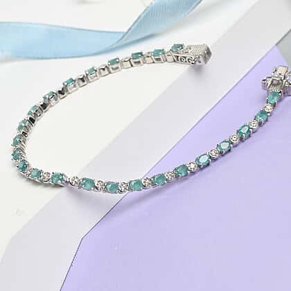 4.59 Ct Grandidierite and Cambodian Zircon Bracelet (Size 7.5) in Platinum Plated Sterling Silver