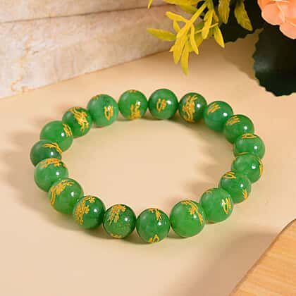 Discover the enchanting charm of our jade beads bracelet, a masterpiece crafted for those who appreciate the finer things in life. Each bead is meticulously rounded and smoothed, featuring an exquisite golden dragon design that symbolises strength and wisdom. Perfectly sized at 6.5-7 inches, this bracelet is a harmonious blend of traditional elegance and modern style. It's not just an accessory but a statement of sophistication and a nod to rich cultural heritage.