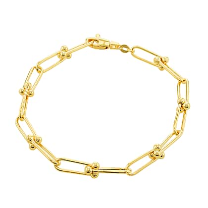 Crafted from yellow gold, this bold-looking bracelet features interlocking paperclip-shaped links that create a sleek and modern aesthetic. This unconventional design breaks free from traditional bracelet patterns lending you an edgy, industrial vibe that goes well with the styling of a woman on the move. The bracelet works well with traditional and festive attire as well as with the formals hanging in your wardrobe.