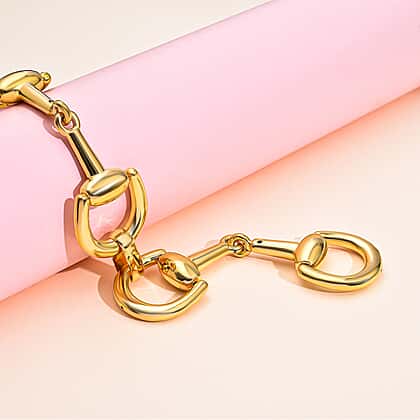 Hatton Garden Close Out - Yellow Gold Overlay Sterling Silver Horse Bit Link Bracelet (Size - 7.5), Silver Wt. 26.7 Gms