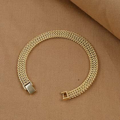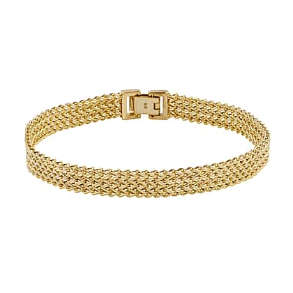 When it's time to up your fashion quotient, this bold foxtail bracelet crafted in yellow gold will get you there in no time. The bracelet is made of 9K yellow gold for lifelong use. The exquisitely crafted bangle features a series of intricate oval links entwined with flat rings in pure gold. Grab this bangle at a never-before price in the Hatton Garden closeout deal!