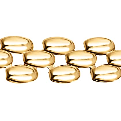 Wear a look of statement with panther chain design bracelet created in 9K yellow gold. Displaying a flat chain design with rectangular rounded edge links lying next to each other and on top of each other to form the design. The 7.5-inch size is a flattering and comfortable fit that matches with just about anything. Out of a total of 24 components, this bracelet is made up of 9 sections of yellow gold, making it durable and long-lasting with a sense of classic brilliance.