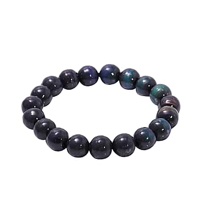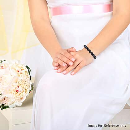- Dark-hued beads of the bracelet are strung into a stretchable string