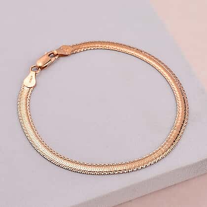 Italian Made - Rose Gold Overlay Sterling Silver Herringbone Bracelet (Size - 7.5)