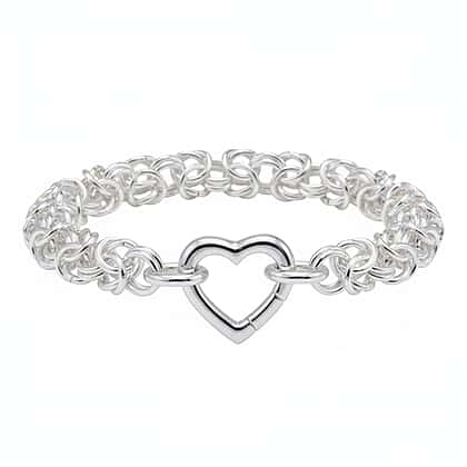 La Bella Fine Italian Jewellery - Handmade Sterling Silver Byzantine Bracelet (Size 7.5) with Heart Clasp