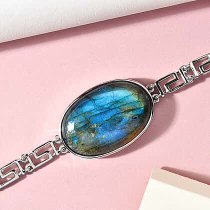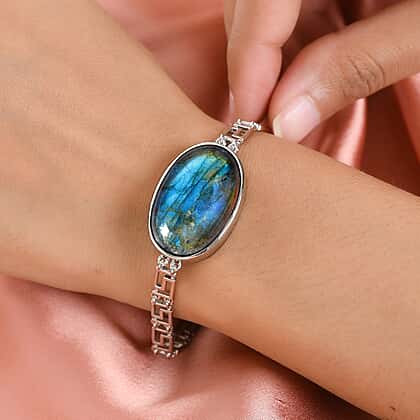 Labradorite Bracelet (Size - 7 with 1 inch Extender) in Silver Tone