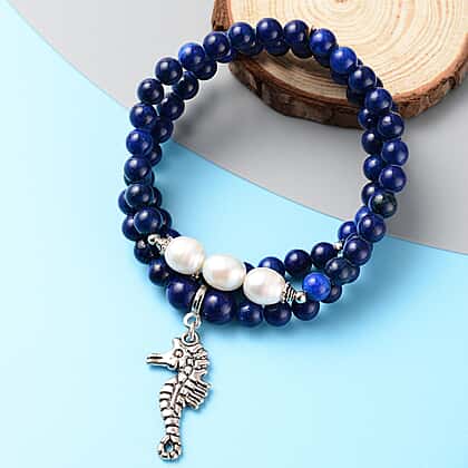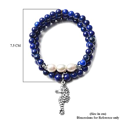 Lapis Lazuli and White Freshwater Pearl Stretchable Bracelet (Size 7) 145.00 Ct.