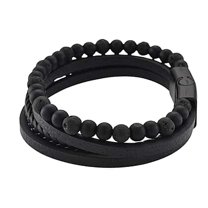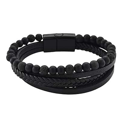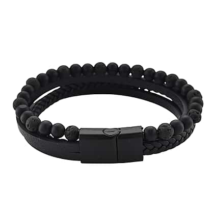 Stylish yet meaningful, this genuine leather lava bracelet combines rugged appeal with modern design. The piece features black lava stone beads and braided and smooth leather strands. Lava stone is believed to absorb negative feelings like stress, anger, or sadness. Crafted in pure alloy, this offers durability and shine that lasts. The sturdy magnetic clasp ensures easy and secure wear, perfect for everyday styling. This piece adds a bold edge to casual and smart outfits, making it an ideal choice for those who like understated yet striking accessories.