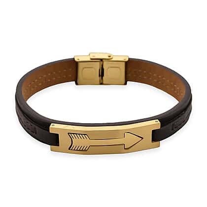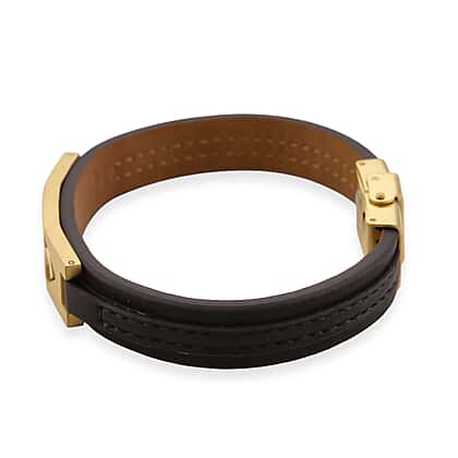 Leather Bracelet (Size - 8) in Yellow Gold Plated