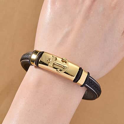 Leather Bracelet (Size - 8) in Yellow Gold Plated