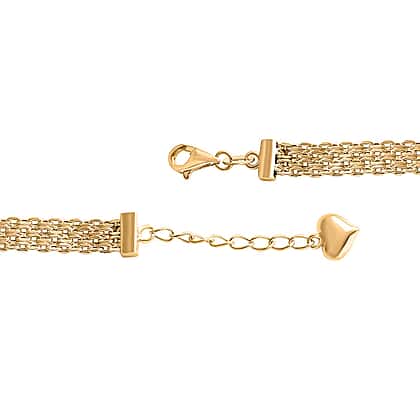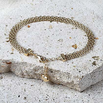 Crafted in 9K yellow gold, this Bismark link bracelet offers timeless elegance with exceptional durability. The intricate Bismark link design ensures a smooth, flexible fit, making it a comfortable choice for everyday wear or special occasions. Hypoallergenic and tarnish-resistant, the bracelet is suitable for sensitive skin and retains its shine over time. Measuring 7 inches, it is designed to sit gracefully on the wrist, offering a secure and stylish finish to any outfit. Whether worn solo or paired with other accessories, this bracelet adds a classic touch of sophistication to your jewellery collection.