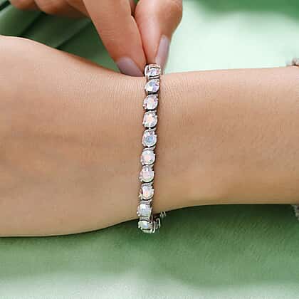 Lustro Stella Made with Finest CZ AB Crystal Bracelet Size 7.5 in Silver Tone