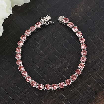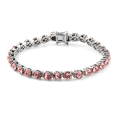 Lustro Stella Rose Peach Crystal Bracelet (Size 7.5) in Silver Tone