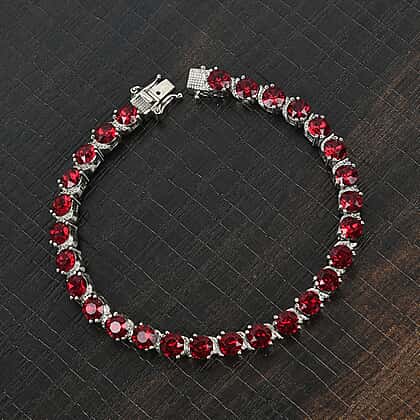 Lustro Stella Siam Colour Crystal Bracelet (Size 7.5) in Silver Tone