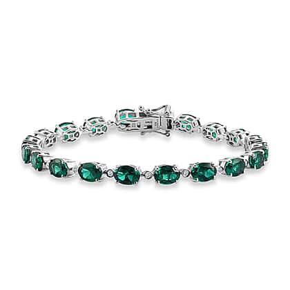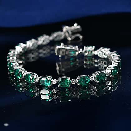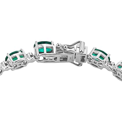 Luxuriant - Lab Grown Emerald & SI-G-H Lab Grown Diamond Line Bracelet (Size - 7.5) with GB Lock Box in Rhodium Overlay Sterling Silver 13.62 Ct, Silver Wt. 10.38 Gms