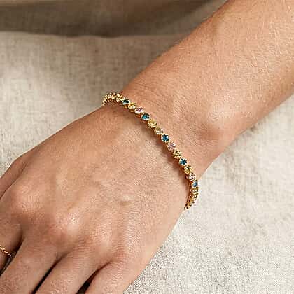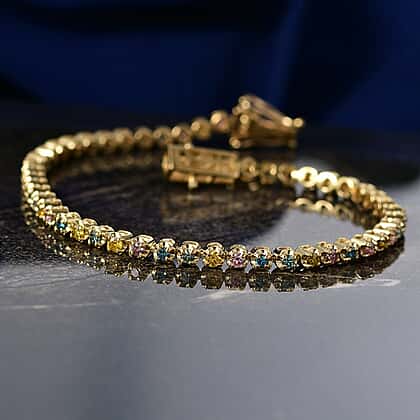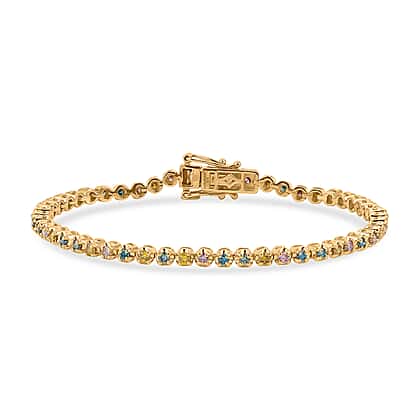 Luxuriant - Lab Grown Multi Diamond (SI-G-H) Tennis Bracelet (Size - 7.5) with GB Lock Box in 18K Vermeil Yellow Gold Plated Sterling Silver 2.00 Ct, Silver Wt. 10.13 Gms