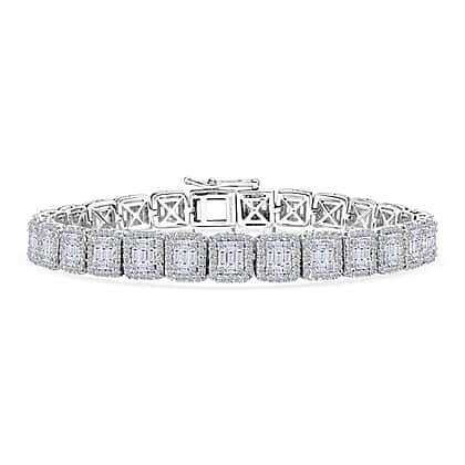 LUXURIANT 4 Ct. Lab Grown Diamond Bracelet (Size - 7.5) with GB Box Clasp in Rhodium Overlay Sterling Silver, SGL Certified (SI-GH)