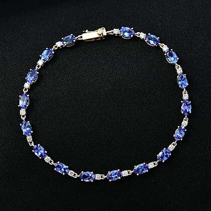 LUXURIANT 7.4 Ct. AAA Tanzanite, Lab Grown Diamond Link Bracelet (Size 7.5) with GB Lock Box in 9K Yellow Gold (SI-GH)