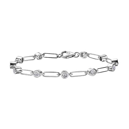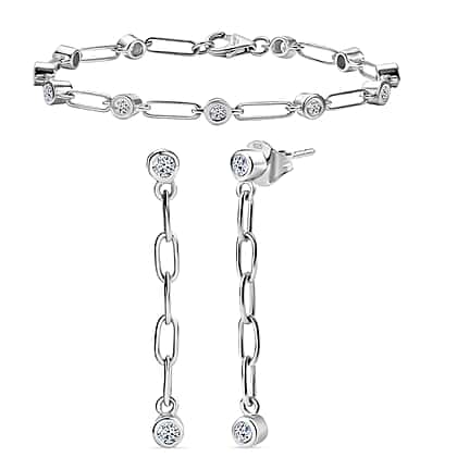 Add a subtle dose of nostalgia and bling to your look with the set of diamond station jewellery. It features a bracelet made in rhodium overlay sterling silver with elongated rectangular links with curved edges and spaced adornments like a bezel-set, round lab-grown diamond. This classic yet cool accessory can be paired with dangling earrings. These earrings feature a smooth bezel-set round diamond at the top from which a chain-like link suspends, and at the end lies a round diamond. Paying a refined nod to 80's punk, these accessories can help add a lot of character to your look. They appear symmetrical with edgy visual breaks and are beloved by cool women everywhere.