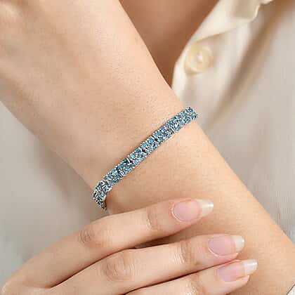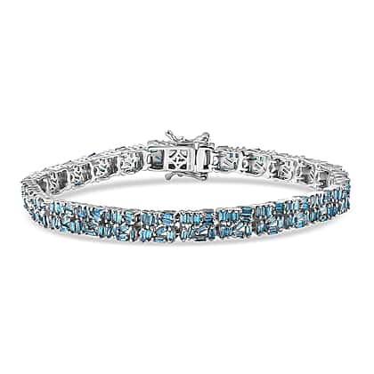 Luxuriant Lab Grown Blue Diamond (SI-GH) Cluster Bracelet (Size 7.5) with GB Lock Box in Rhodium Overlay Sterling Silver 4.99 Ct, Silver Wt. 13.32 Gms.