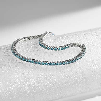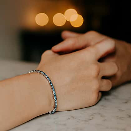 Enter into the pinnacle of luxury with this linking bracelet, showcasing the beauty of lab-grown blue diamonds, lying in a row, creating a link. The cool and ocean blue of the diamond offers a serene beauty, making it a piece to cherish for life. Meticulously crafted in rhodium overlay on 925 sterling silver, this ring ensures durability and enduring shine. Lightweight and hypoallergenic, this ring offers comfort and is safe for sensitive skin. Make your moment memorable with this mesmerising lab-grown diamond bracelet in ocean blue hue.
