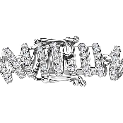 LUXURIANT 4 Ct. Lab Grown Diamond Spiral Bracelet (Size - 7.5) in Rhodium Overlay Sterling Silver