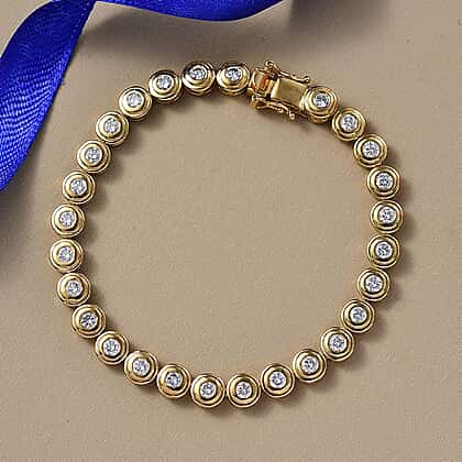 Luxuriant Lab Grown Diamond (SI-GH) Line Bracelet 1 Row (Size 7.5) with GB Lock Box in 18K Vermeil Yellow Gold Plated Sterling Silver 4.05 Ct, Silver Wt. 15.07 Gms.
