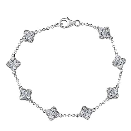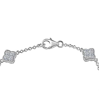 Displaying a refined, beautifully detailed piece, this Luxuriant station bracelet features a series of diamond-set floral designs placed along a delicate sterling silver chain. The lab-grown diamonds are arranged in a soft, petal-inspired silhouette, giving each station a delicate sparkle that feels graceful on the wrist. Finished in rhodium overlay over 925 sterling silver for a bright, enduring shine, the design offers a luxurious yet wearable look that transitions effortlessly from day to evening. A timeless piece with a feminine touch, perfect for gifting or personal keepsake.