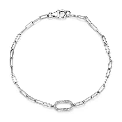 Luxuriant SI-G-H Lab Grown Diamond Paper Clip Bracelet (Size - 7.5) in Platinum Overlay Sterling Silver