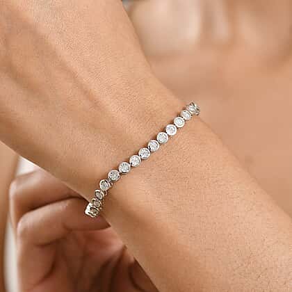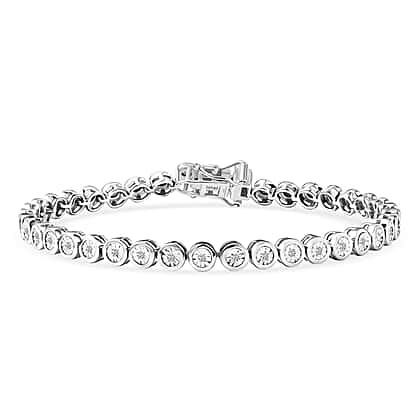 Experience the brilliance of lab grown diamond with this lab-grown diamond Tennis bracelet, crafted for a clean, high-sparkle finish that suits every occasion. A continuous line of round diamonds is set in a sleek, uniform row, creating a bright “river of light” effect with every movement. The design sits close to the wrist for a smooth, comfortable feel and looks premium when worn solo or stacked with a watch and bangles. Finished in rhodium overlay on 925 sterling silver, it keeps a crisp, mirror-like shine. Secured with a GB lock box clasp for confident wear and a refined, finished look.