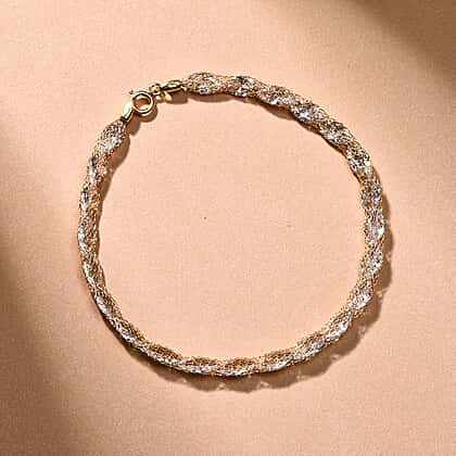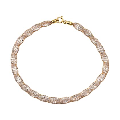 Maestro Collection - Handcrafted - 9K Yellow Gold Cubic Zirconia Tuscan Crochet Bracelet (Size - 7.5) With Spring Ring Clasp