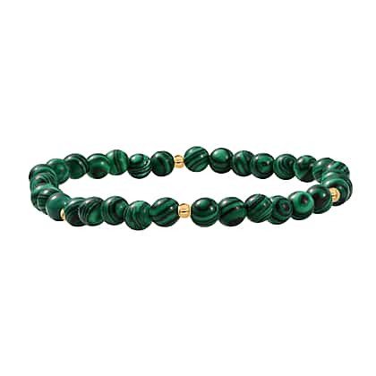 Malachite Bracelet (Size 8 Stretchable) in 18K Yellow Gold Plated Sterling Silver 40.00 Ct.