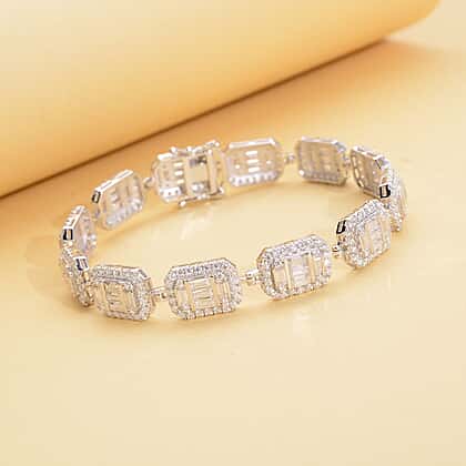 Moissanite Bracelet (Size - 6.25) in Rhodium Overlay Sterling Silver 9.46 Ct, Silver Wt. 17.00 Gms