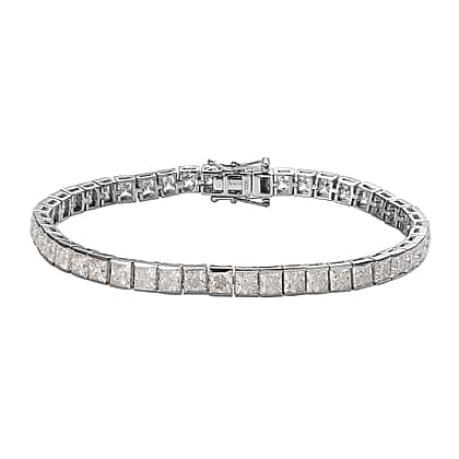 Moissanite Bracelet (Size - 8) in Platinum Overlay Sterling Silver 18.231 Ct, Silver Wt. 13.97 Gms