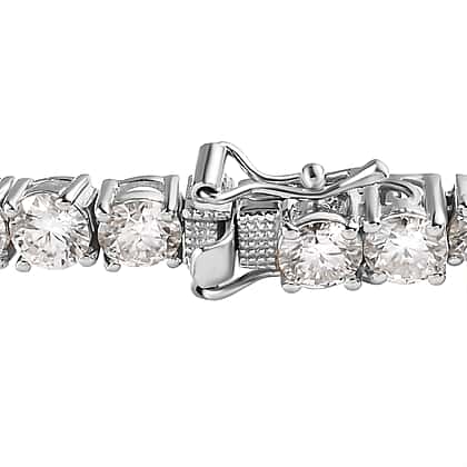 Moissanite Tennis Bracelet (Size - 7.5) in Platinum Overlay Sterling Silver 15.20 Ct, Silver Wt. 12.00 Gms